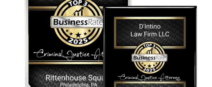 D'Intino Law Firm LLC has been officially recognized as a TOP 3 of 2025 Rittenhouse Square Award Winner in the Criminal Justice Attorney category- an honor based on verified data from Google Reviews, as analyzed and certified by BusinessRate.